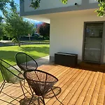 Offering an adjoining terrace and a balcony, the interior design offers sound-proofed windows, as well as a flat-screen TV with satellite channels. The accommodation is also furnished with a sofa set and a writing desk. Beds fitted with down-feather pillows are at guests' disposal. Enjoy the comfort of a bathroom in this apartment, which is equipped with hair dryers and towels. Moreover, there is a walk-in shower and a separate toilet as well.